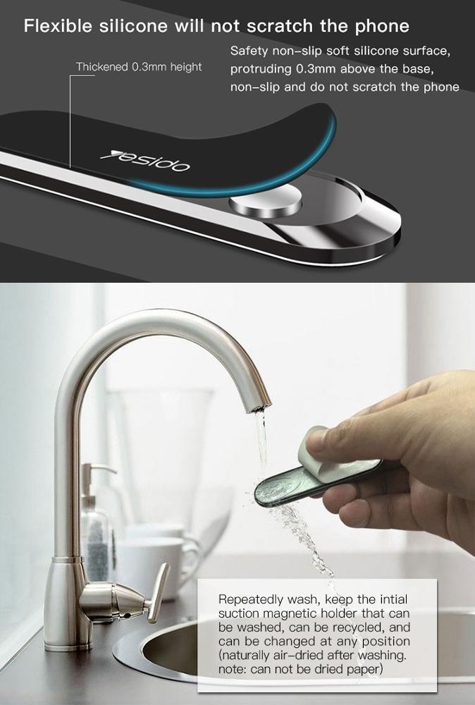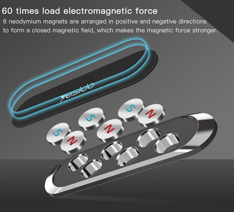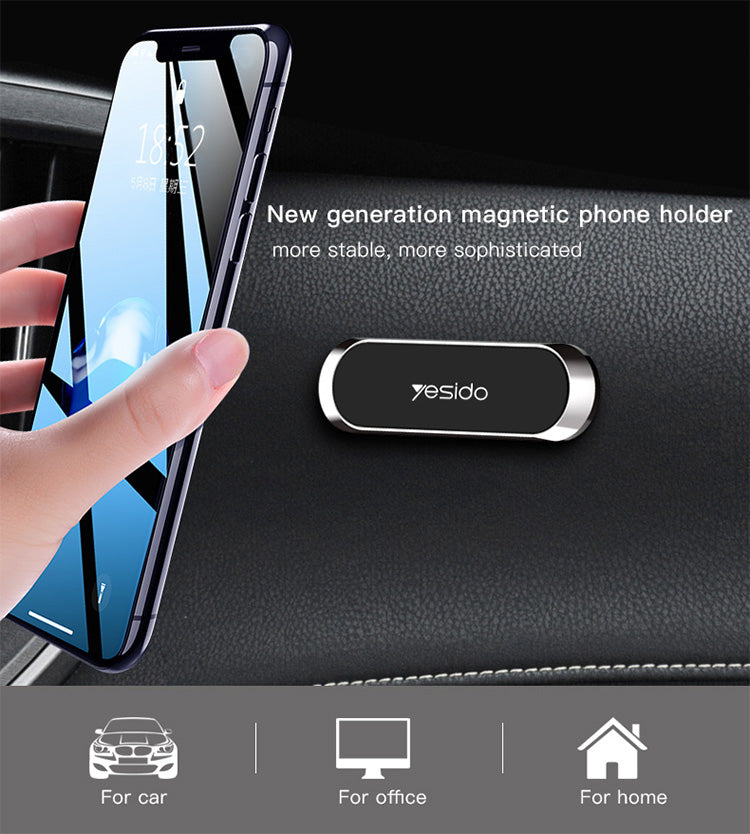 El Soporte Magnético de Teléfono YESIDO C55 es un accesorio universal de alta calidad para mantener tu teléfono seguro y accesible. Perfecto para el tablero del coche, la pared o cualquier superficie plana, su diseño magnético garantiza una sujeción firme sin rayar tu dispositivo. Fácil de instalar y elegante, es ideal para conducir, trabajar o usar en casa.